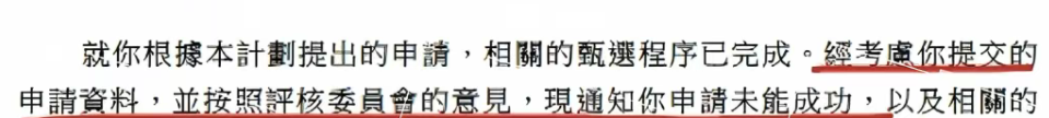 即便申请人达到了香港优才计划的申请标准,其申请仍然可能被拒。在这种情况下,拒绝信上会注明“相关的甄选程序已完成,经考虑你提交的申请材料,并按照评审核委员会的意见,现通知你申请未能成功”。