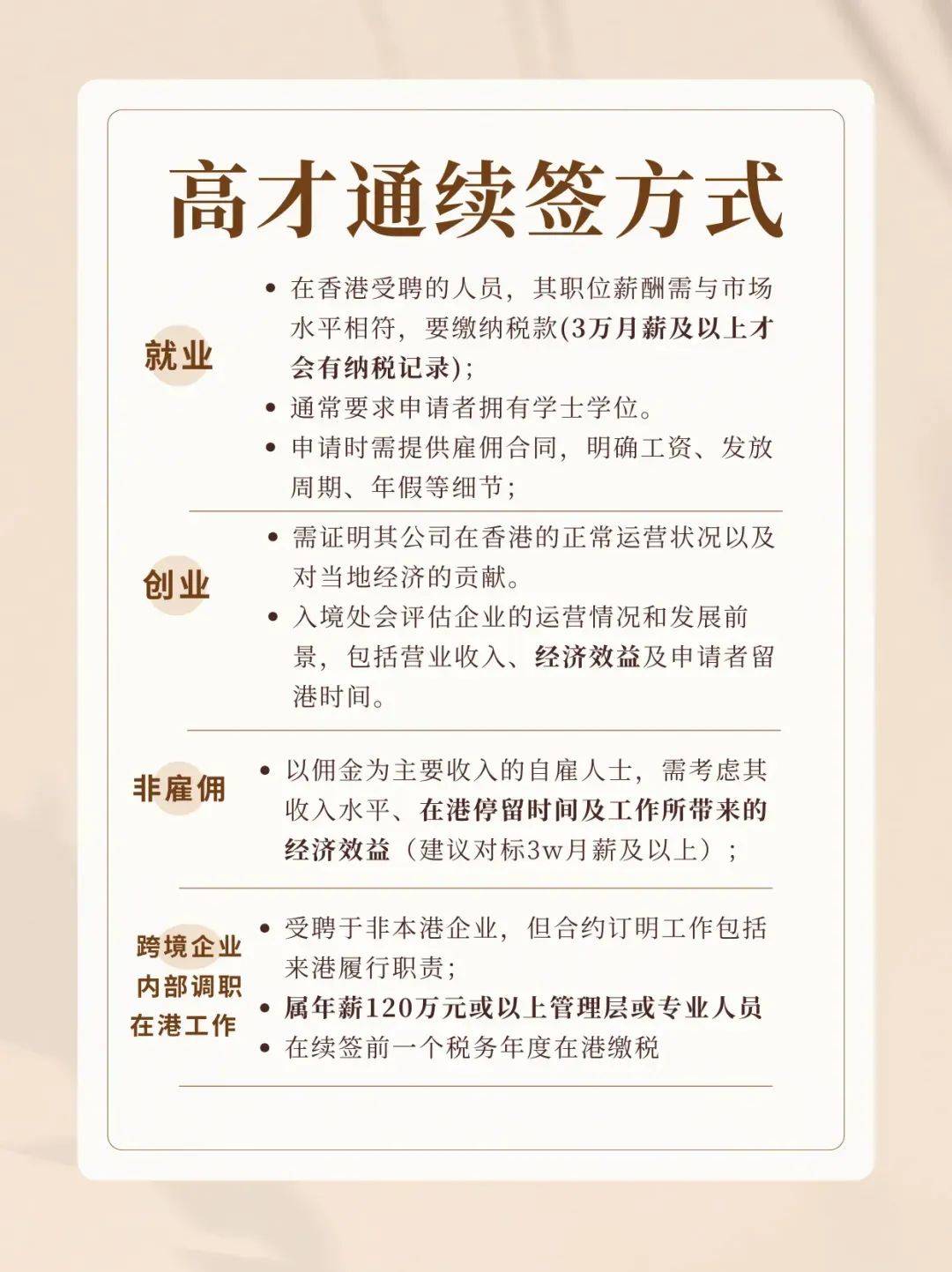 香港高才续签要求主要围绕与香港的工作关联、经济贡献及在港居住时长等方面,以下是核心要求: