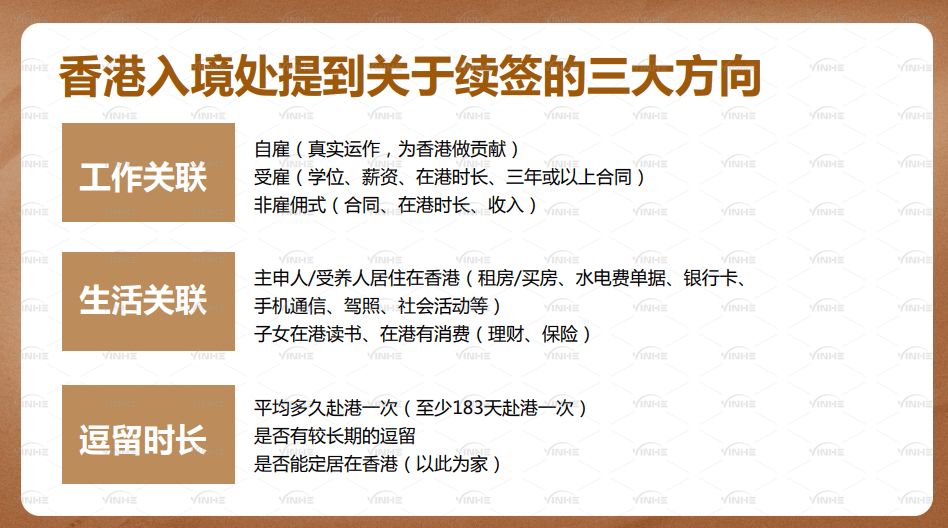 近几年,香港入境处对各类人才签证续签都有明确要求,一般会从工作联系+生活关联+逗留时长等多个维度,再结合各类人才计划续签的要求,综合对申请人递交的材料进行评估,获批相应的续签时长。