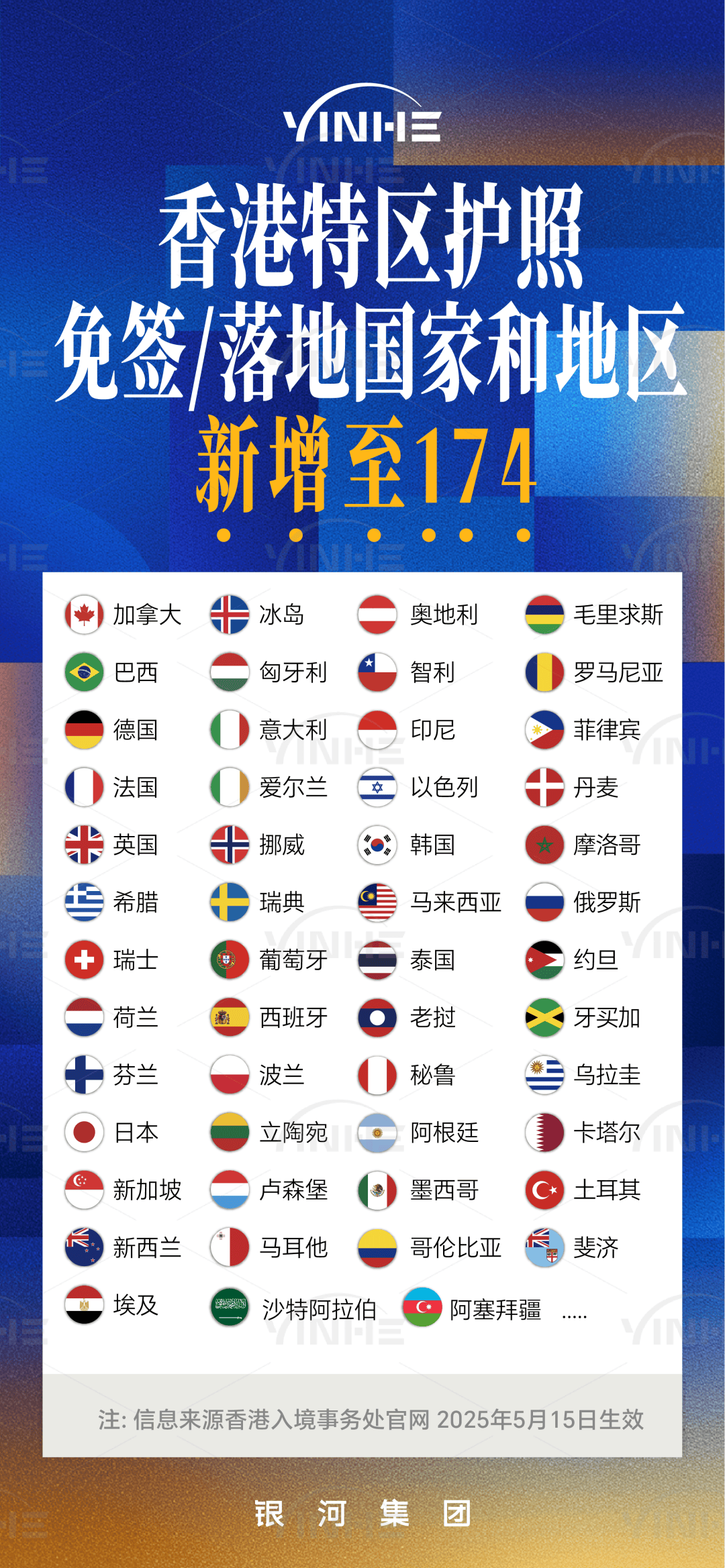 可申请香港特别行政区护照,免签或落地签覆盖174个国家及地区,包括欧盟申根区、英国、加拿大、日本、韩国、澳大利亚等,显著降低商务及旅游签证成本。