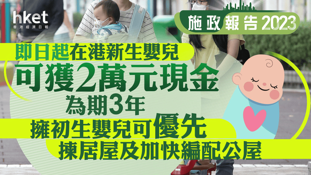 在港出生且父母一方为永居的新生婴儿,可获政府一次性2万港元「新生婴儿奖励金」;另可叠加申请育儿津贴、学前教育学券等配套资助。