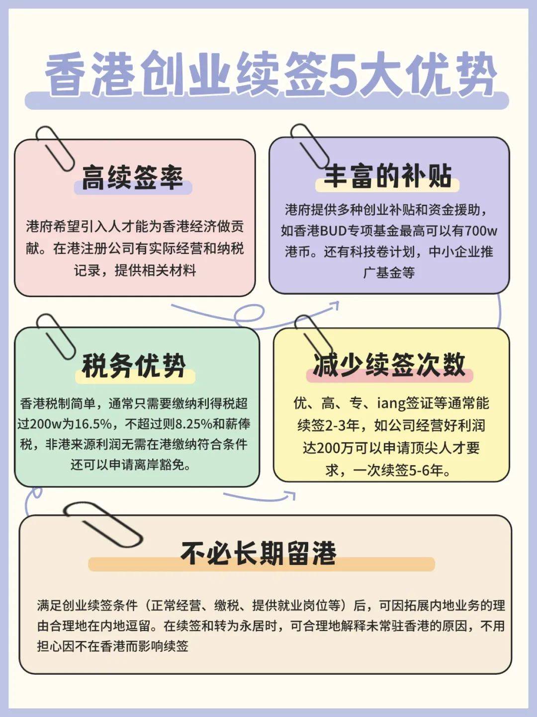 但需要提醒大家的是,高才创业自雇续签并非仅仅是“注册公司”这么简单,而是一套从公司注册到正式运营的全流程规划。如果公司业务不清晰,可能只能获得半年或一年的短期续签,后续还需证明对香港的经济贡献。