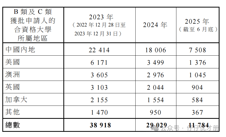根据港府此前在立法会披露的数据,2025年上半年BC类签证共有11784宗获批,其中60%的申请人毕业于中国内地大学。