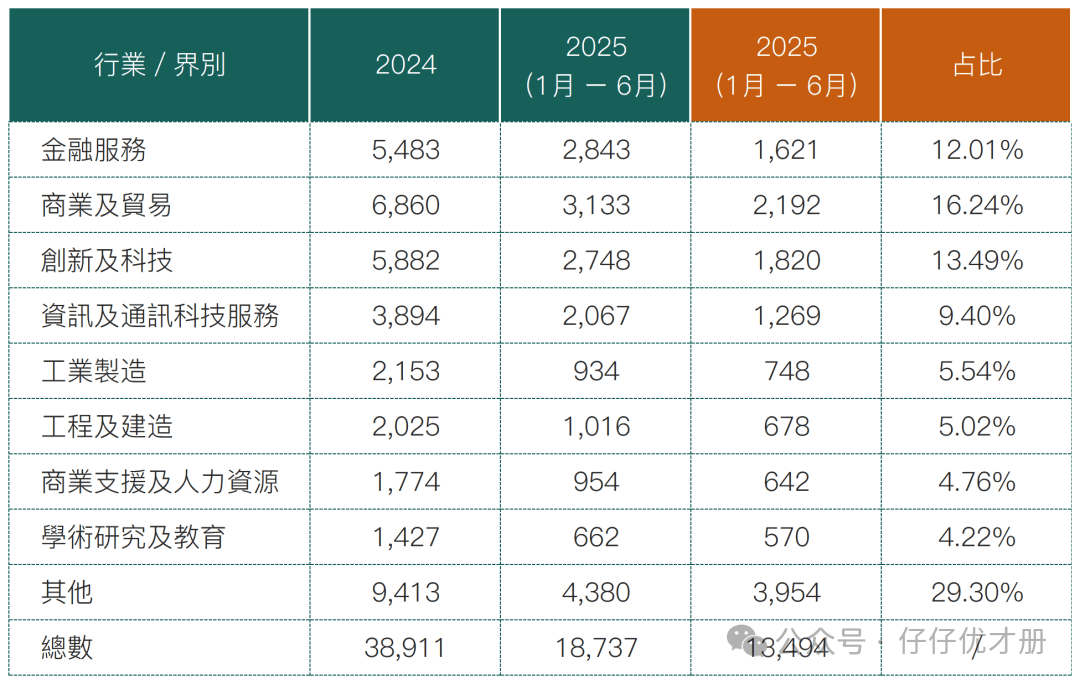 创新及科技和资讯及通讯科技构成了第二梯队,合计占比22.89%。这一趋势与香港的“科创转型”战略高度契合,表明香港在科技领域的吸引力正在逐步增强。