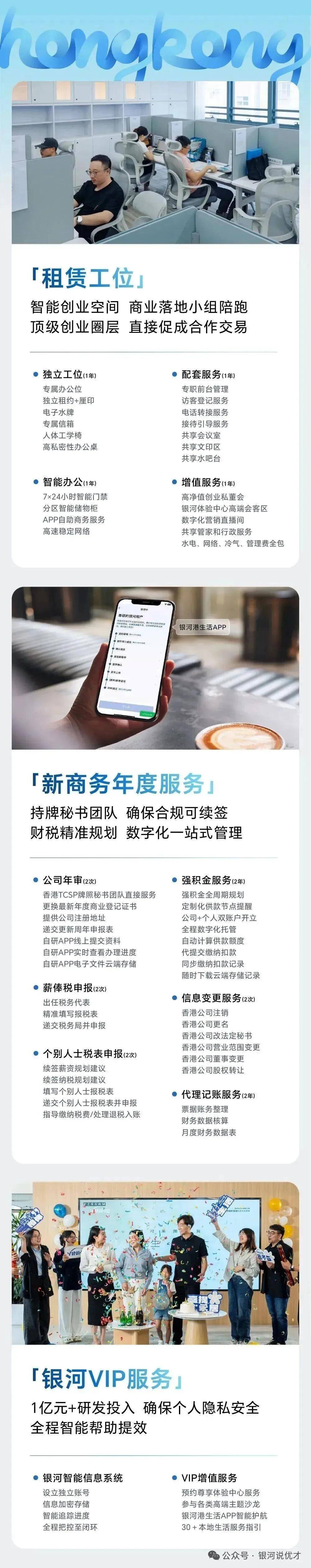 如果你想赴港创业/做生意,有注册香港公司、银行开户、强积金申报、公司年审、代理记账、公司更名等企业服务需求,欢迎随时咨询银河君(17319271820):