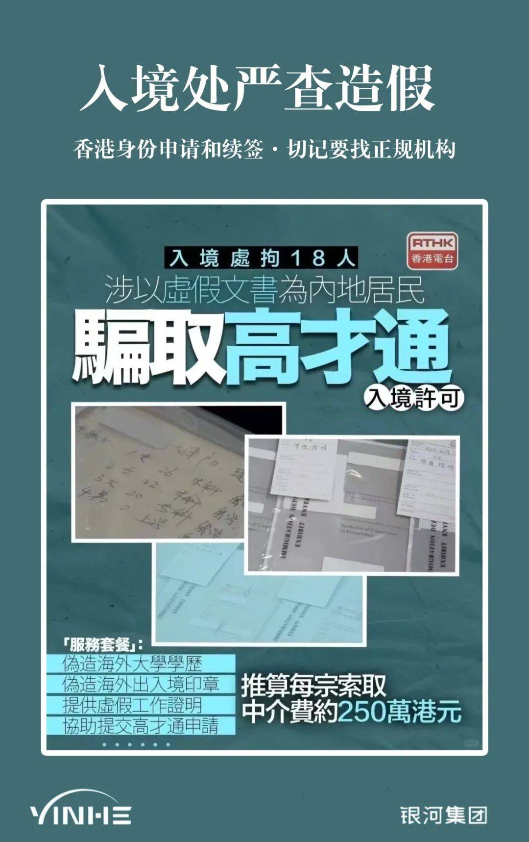 近期,香港入境处瓦解跨境“高才通”诈骗集团,拘留18人,涉案金额达5500万港币。犯罪集团以虚假学历协助内地居民申请高才通计划,每案收费250万港元!