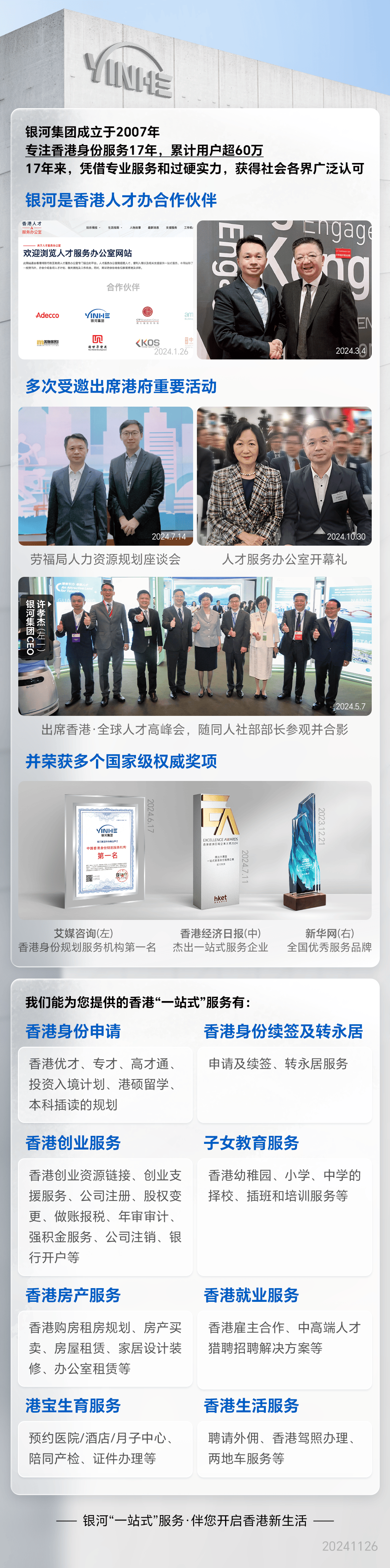 银河集团致力于为您提供全方位的服务,帮助您在香港身份申请、续签及转为永久居留的过程中进行评估、准备材料、提交申请,并协助您赴港办理证件。