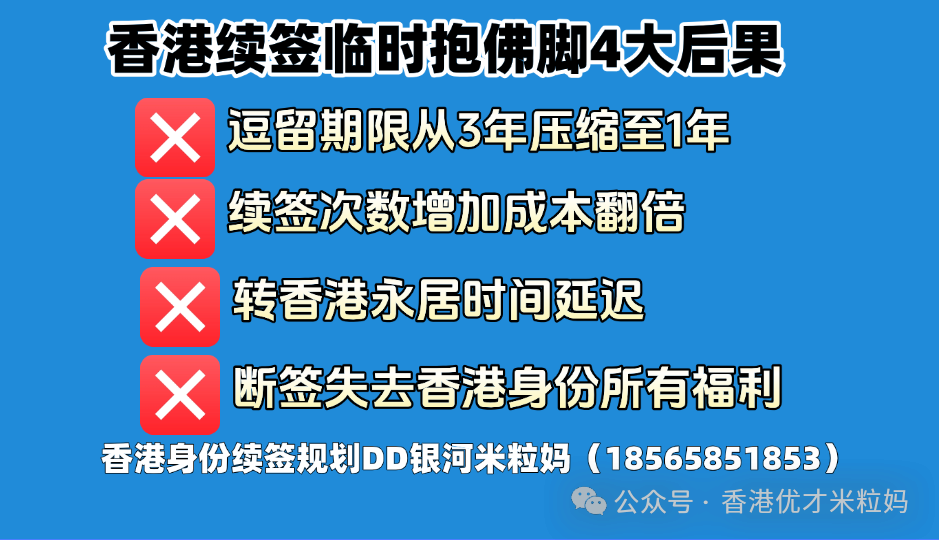 香港身份续签您遇到任何问题,都可以咨询米粒妈(微信:18565851853)。银河集团提供香港身份续签全方位服务,帮助你解决各种难题:添加受养人、单次续签、断签补救、续签到永居、创业自雇续签。