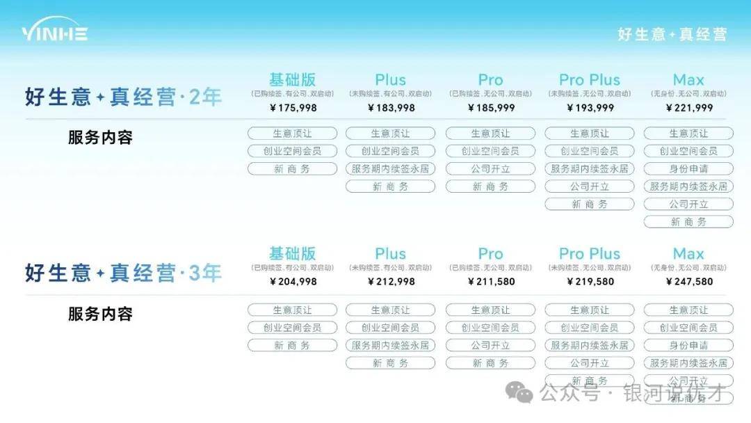 银河集团提供多种创业续签服务套餐,不管你是否有公司、是否有业务,都可以跟银河君(17319271820)了解服务详情后再做决定: