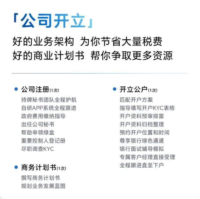 提供公司注册、开立公户,搭建一个好的业务架构,帮助创业者节省大量税费。