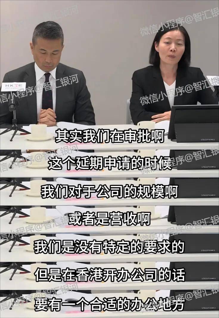 香港入境处对此的回复是:“其实我们在审批这个延期申请(续签)的时候,对于公司规模、营收,是没有特定要求的。但是在香港开办公司的话,需要一个合适的办公地方。”