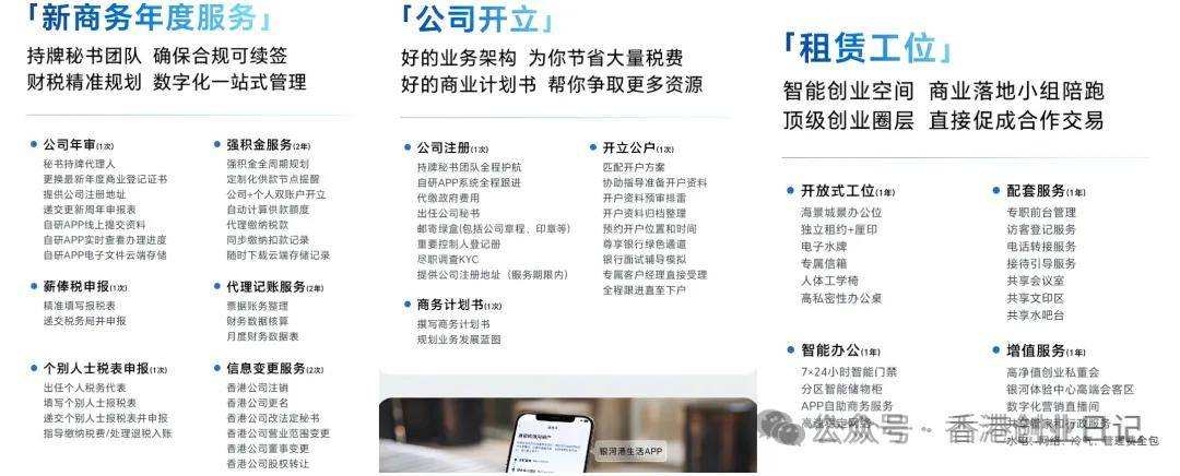 银河集团还提供香港创业一站式服务,商业落地小组全程陪跑(内地+香港+境外业务运转路径),想去香港创业的人士选择银河服务后,可专注于业务拓展,避开繁杂的行政、商务、财税等问题。