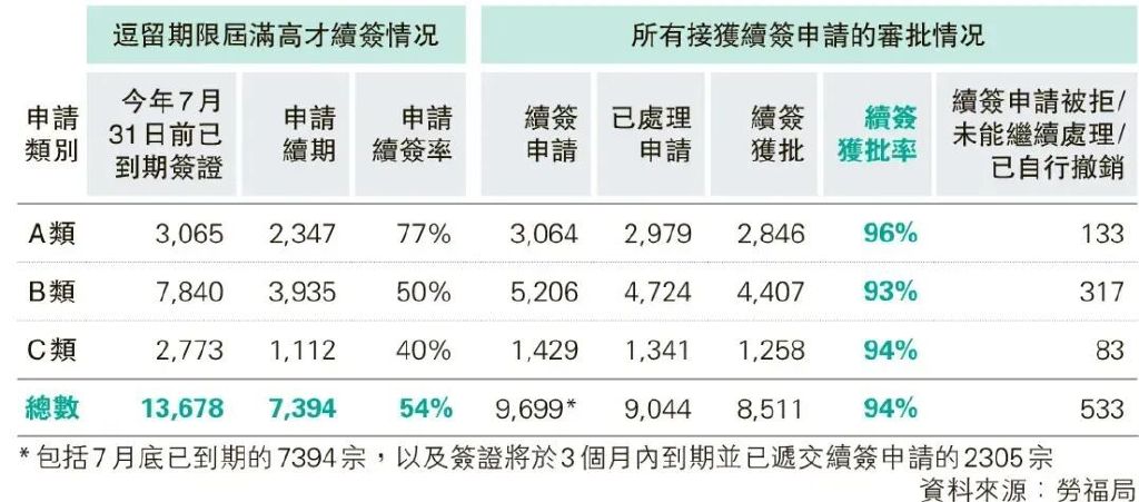 ✅整体续签申请率:约54%(在签证到期的1.4万名高才中,有7,394人提交申请)