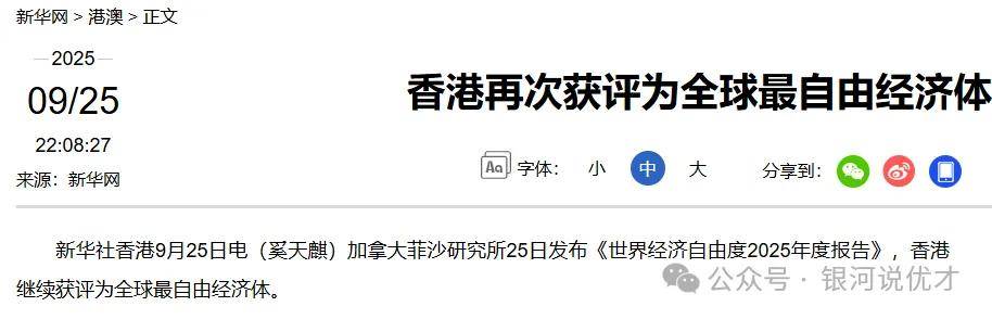同时,香港拥有高度开放的市场经济体系,2025年再次被评为全球最自由的经济体。截至2024年,香港的资产及财富管理业务总值约35.1万亿港元。截至2025年3月底,注册基金数目达976个,按年录得超过440亿美元的资金净流入,暴增285%。