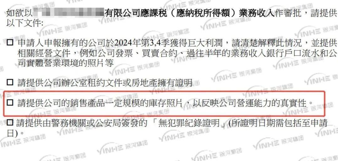 最近银河集团收到的续签申请补件中,入境处明确指出了这一点:“请提供公司的销售产品一定规模的库存照片,以反映公司管理能力的真实性”