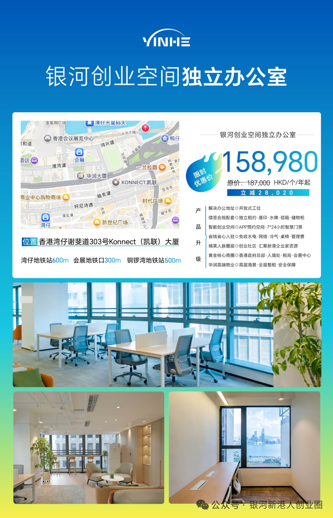 银河集团提供共享工位服务,一个共享工位年租仅需59999港元,独立办公室也才158980港元/年签约就送独立租约、厘印文件、水牌上墙、专属信箱、专属储物柜——这些续签必备材料,不用自己跑断腿。想要详细了解,可以加银河米粒妈微信私聊(手机见卡片)