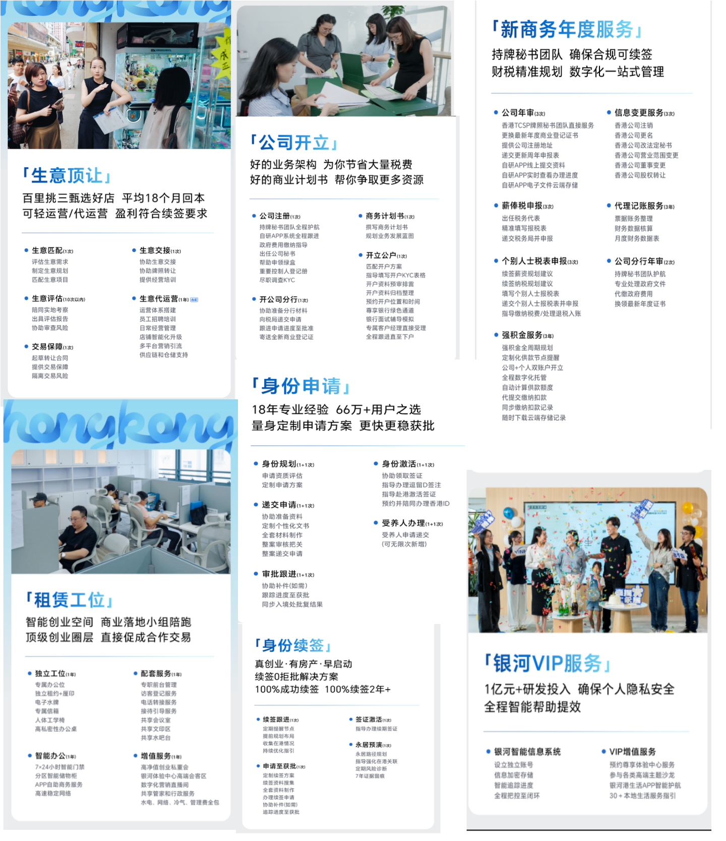购买银河【好生意·真经营】服务,你将拥有银河7大板块服务,助您拿到香港身份、子女赴港读书、创业盈利、顺利续签转永居。银河凭借十几年香港服务经验,从香港身份申请材料打磨,到香港公司真实运营规划,再到续签转永居关键节点把控,每一步都有专业团队护航,让你既顺利拿身份、子女享优质教育,又能依托香港优势开拓海外市场,实现 “身份 + 事业” 双赢!
