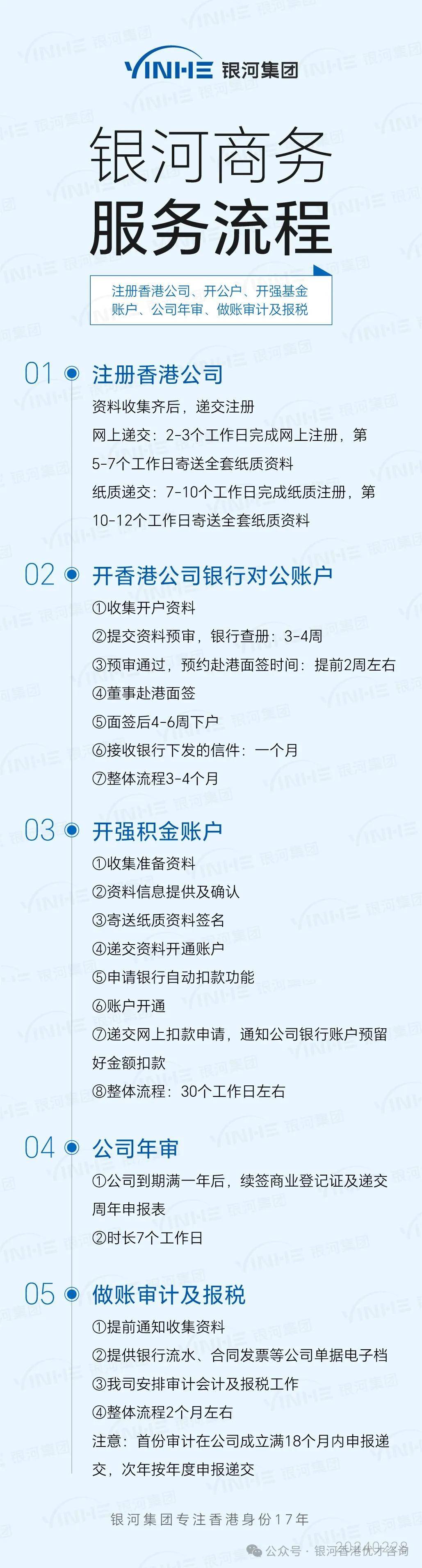 银行开户:为客户提供银行开户指导和支持,帮助客户在香港开立公司账户。
