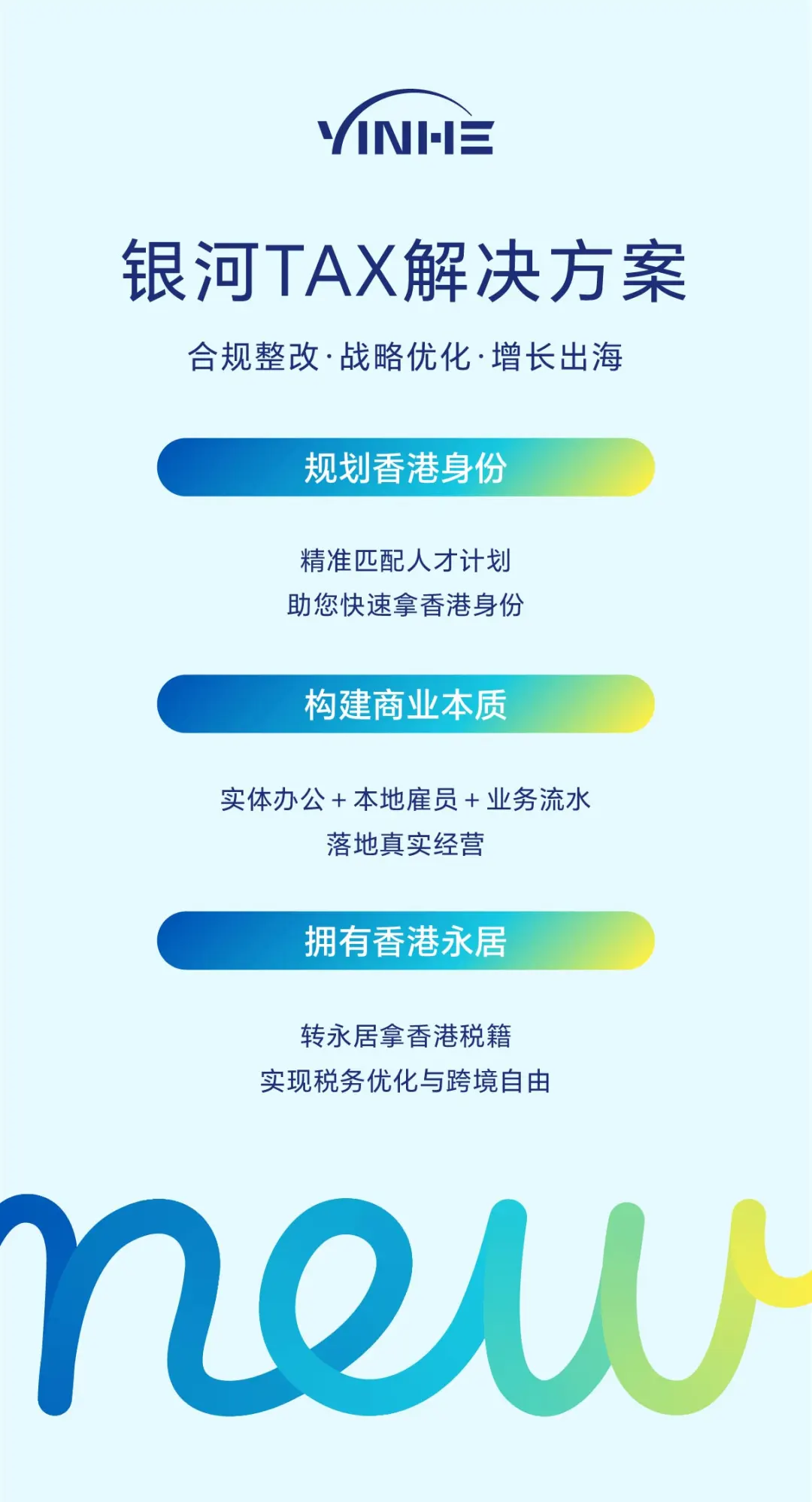 银河集团【好生意·生意星】服务,助力内地企业或个人出海香港,覆盖一站式香港公司需求及香港身份业务,从身份税务到公司业务全面安心落地香港,享受香港低税率政策及便利的全球金融优势,欢迎找我们咨询:
