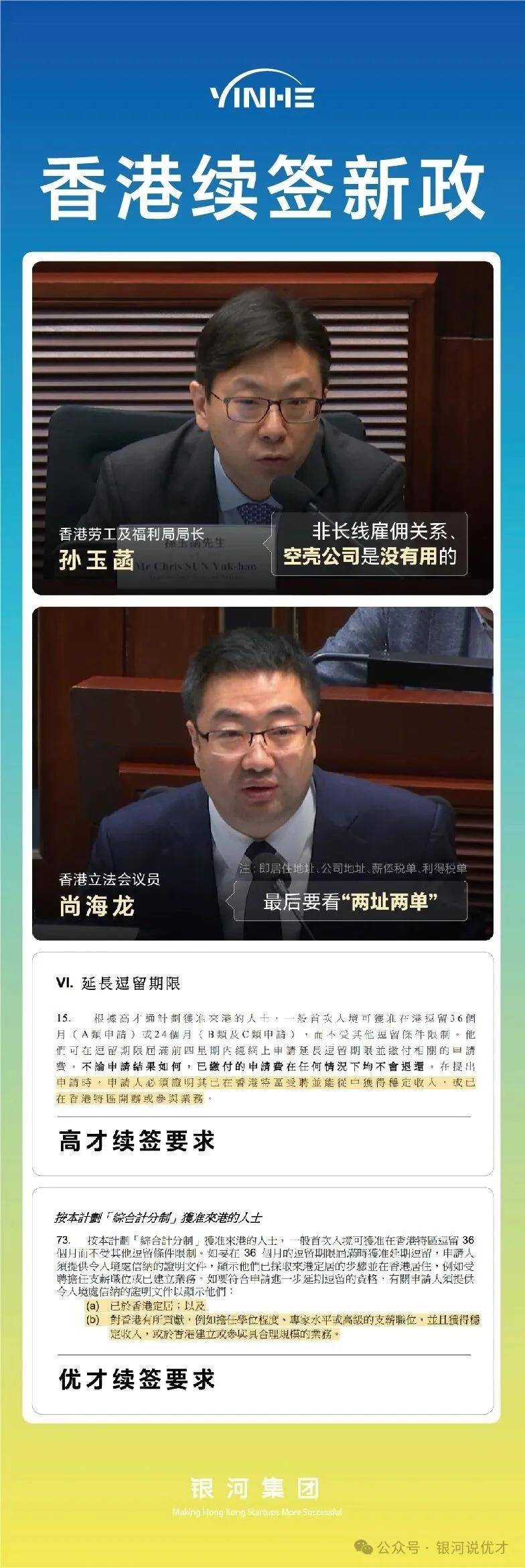 根据港府新政,续签永居必须真实在港定居、创业或就业。如您有续签或创业需求,银河可提供一站式咨询规划,自己省事省心、实现真实续签。DD(微or电:19168595934 / 17319271820)具体聊聊