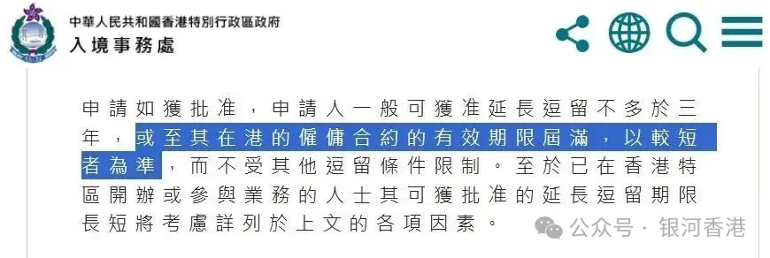 2024年11月,入境处更新官网上关于高才通续签的描述,明确表示申请人一般最多续签3年,或者到雇佣合约到期,以较短者为准。