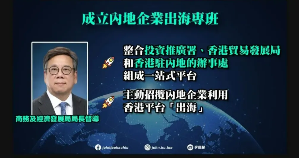 为强化这一优势,2025年《施政报告》明确提出整合政府资源,成立「内地企业出海专班」,通过跨部门协同与专业化服务,系统性降低企业全球化布局成本。