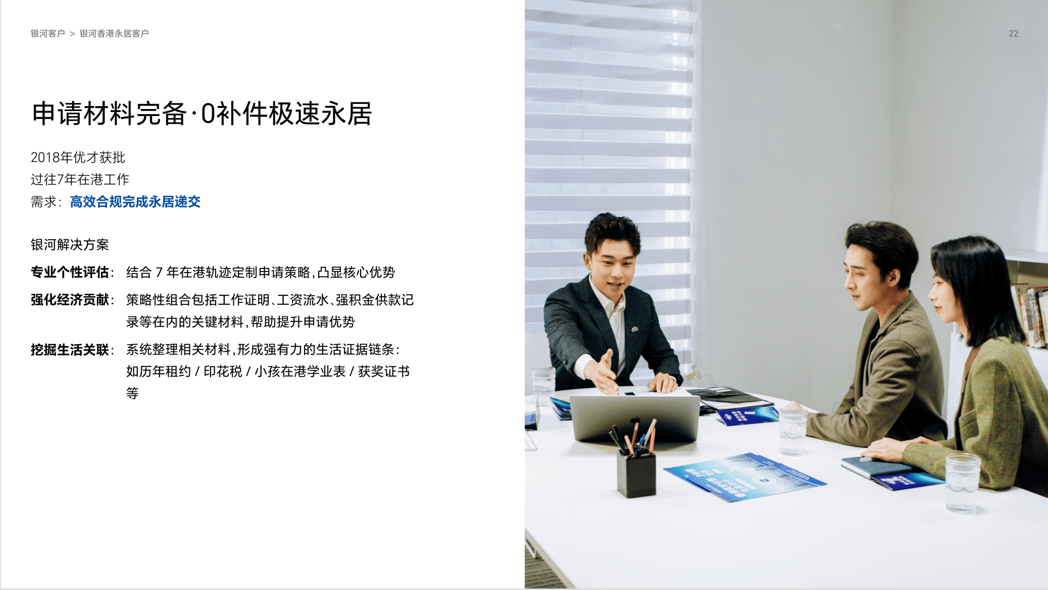 这意味着申请人只需在银河集团一家机构内即可完成身份规划、续签及在港安家的所有流程,无需中途转投其他机构,极大地节省了时间和精力。特别是对于那些因工作繁忙或不熟悉香港政策而感到困惑的客户来说,银河集团的一站式服务无疑是一大福音。