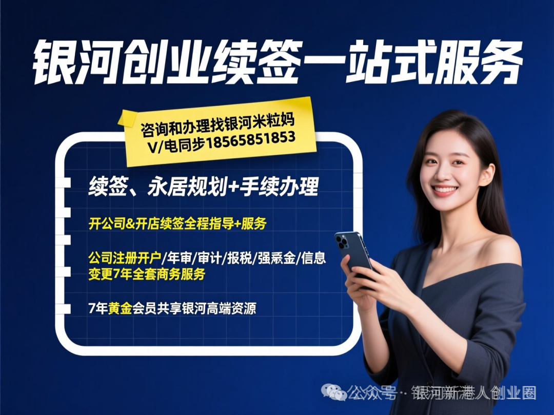 如需香港身份续签或转永居专业支持,可以DD银河米粒妈:18565851853&17675416895,银河创业续期一站式服务为您提供从续签规划、公司注册到永居申请的全流程服务。