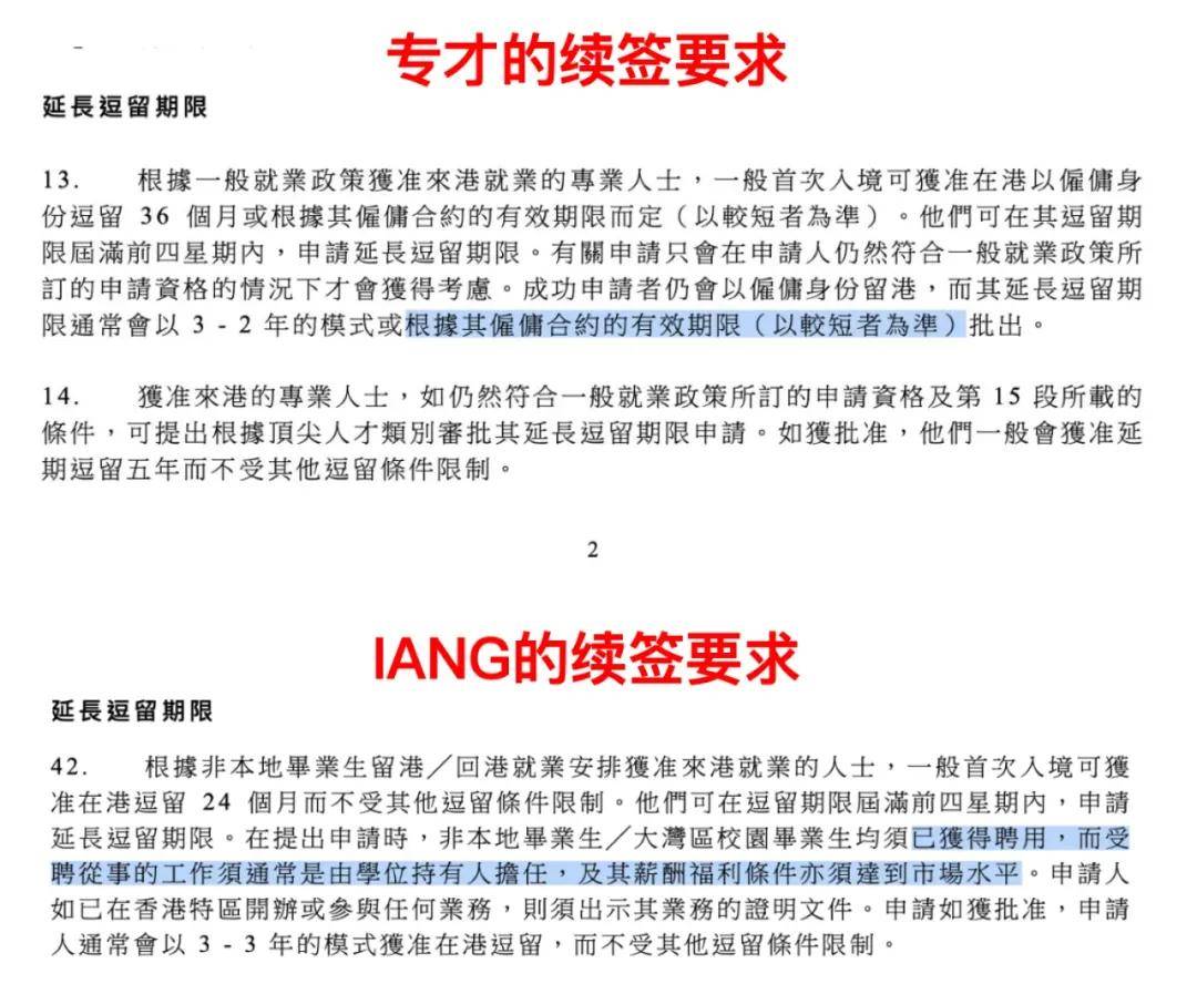 根据香港入境处官网最新版 ID (C) 991 文件明确规定,只有 “专才” 签证会依据合同结束日期审批续签时长,IANG 签证并不在此列。对此存疑的博主前往将军澳入境处 6 楼询问缘由。