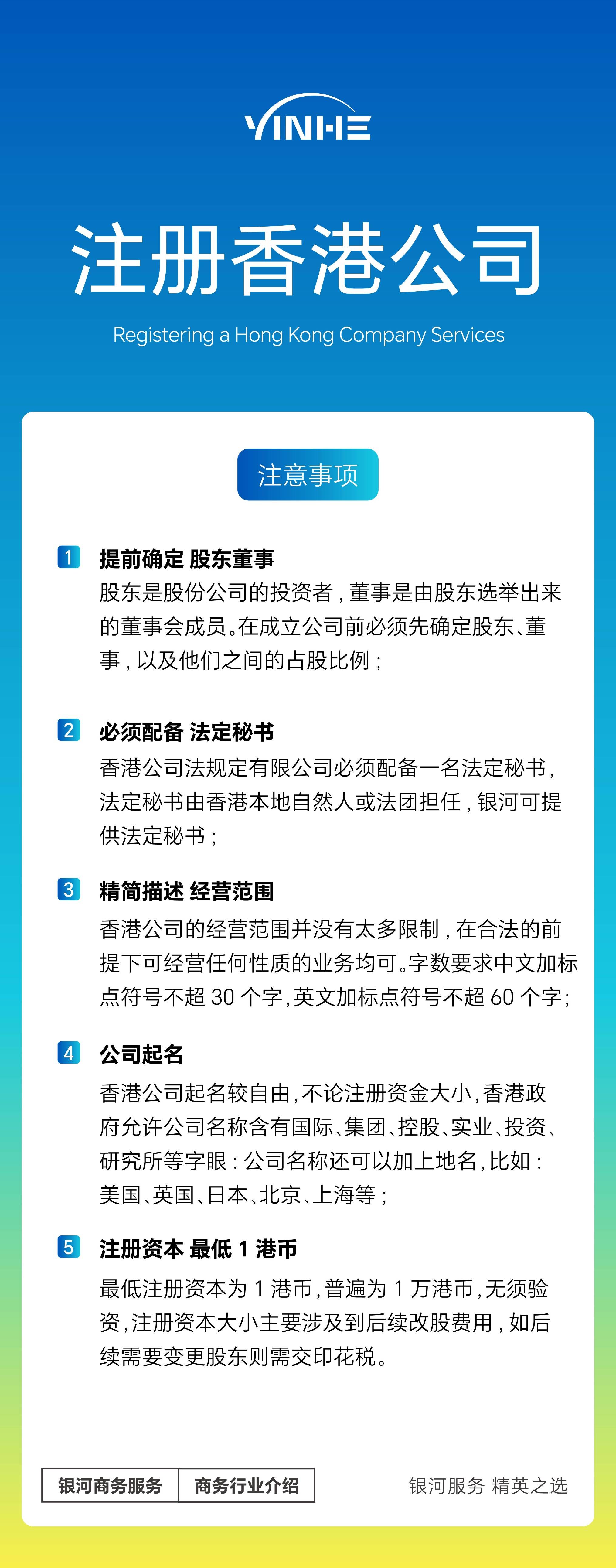 1、公司名称注册:需确保拟用的公司名称未被他人占用,同时严格符合香港公司注册处的命名规则,避免使用敏感词汇。