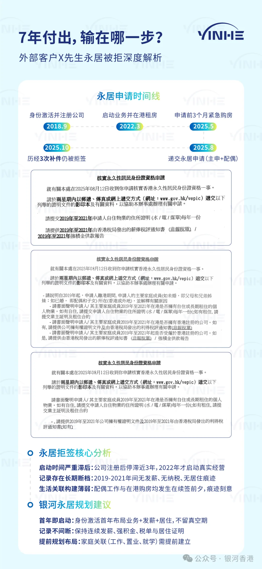 银河集团真实案例:香港投资入境7年转永居失败!详细解读香港永久居民身份核准6个要求(通常居住+不在港合理解释+构建真实贡献)!