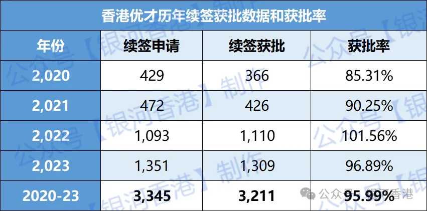 但实际上,香港入境处并没有直接给出直接的续签获批数据,而且递交申请续签的人才可能并非全部是同一年获批(可能是第二次续签),94%续签成功率是个数字是不准确的。