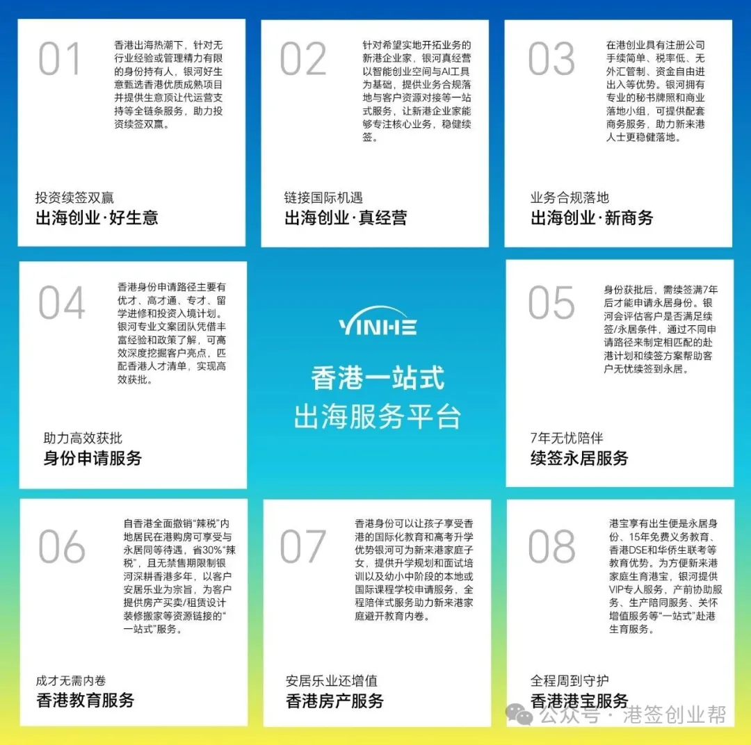 银河集团有一站式香港服务,可根据客户续签时间连贯性来做全套落地方案,真正做到真实合规等,让你全程无忧,涵盖身份类、生活类(子女教育、购房、港宝、驾照等)、创业类(公司注册、年审等)!一站式为身份续签和转永居服务!