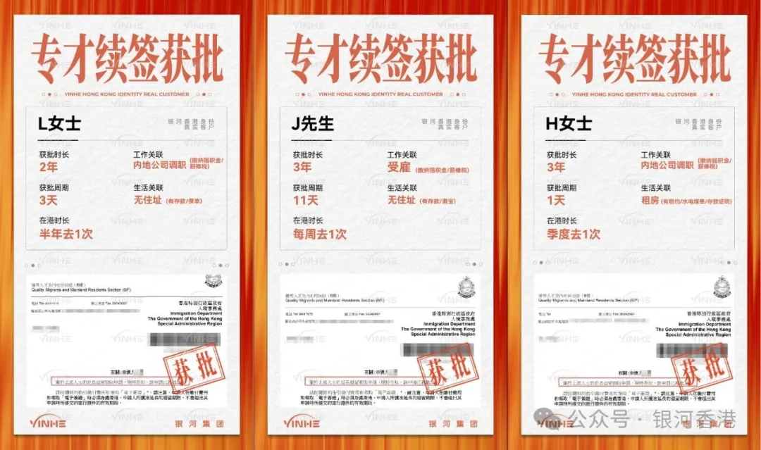 已经获批香港高才/优才的朋友,建议尽早规划续签和永居事项,不妨点击看看自己后期续签和z转永居成功率或能续签多长时间,也可找银河给您规划续签和转永居方案(联系我:18512604364或18148597167)↓↓↓