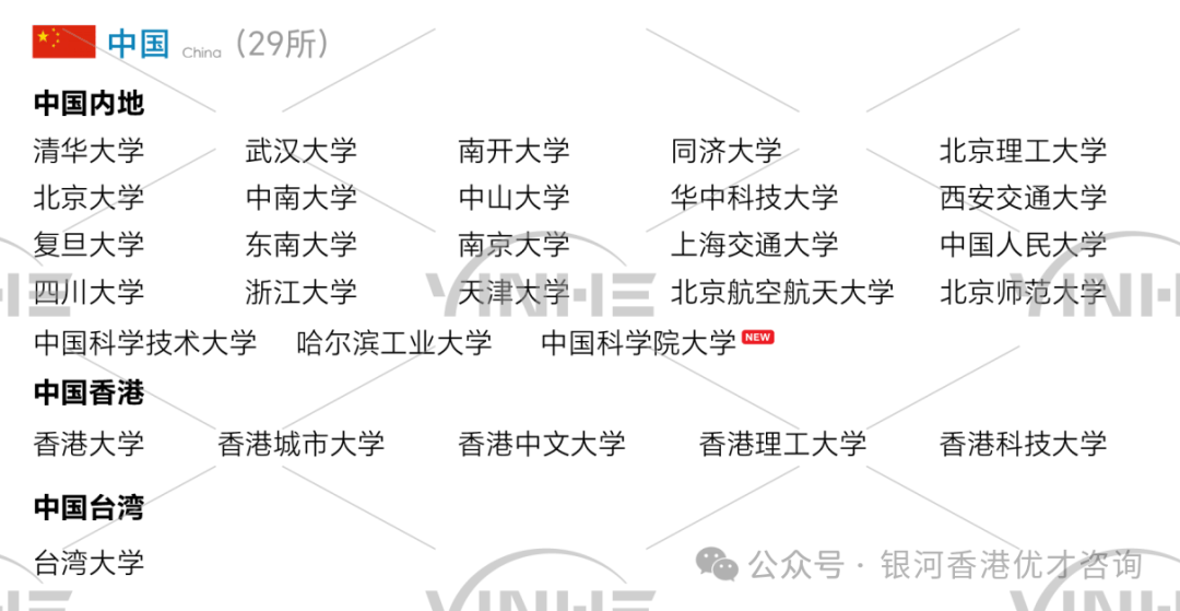 B、C类的合资格院校全球一共200所,内地有23所上榜: