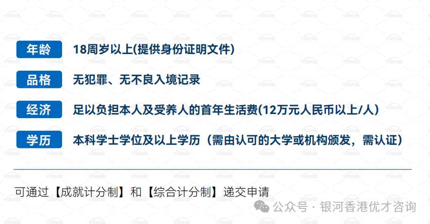 ②综合计分制(更新后):2024年起,综合计分制进行了优化,设立12项评估准则,申请人需符合其中至少6项才可递交申请。