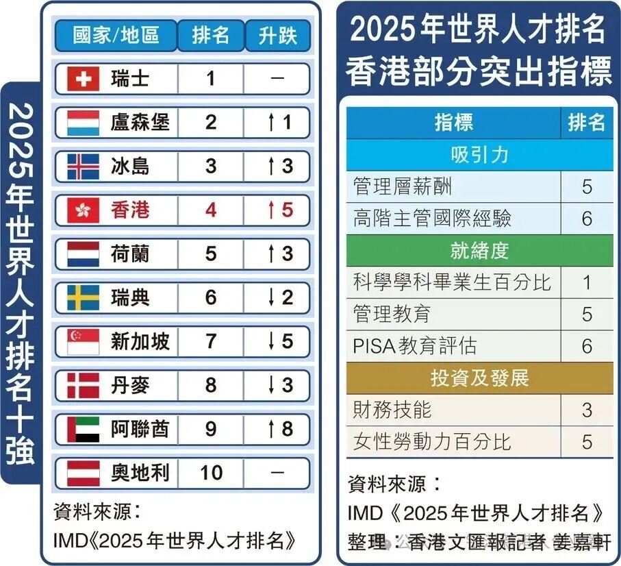 孙玉菡说,香港在国际管理发展学院今年发布的《2025年世界人才排名》中位列亚洲第一,由去年的第九位跃升至第四位,是历来最高排名,肯定了本届政府招揽人才工作的成功。