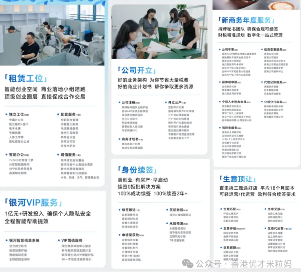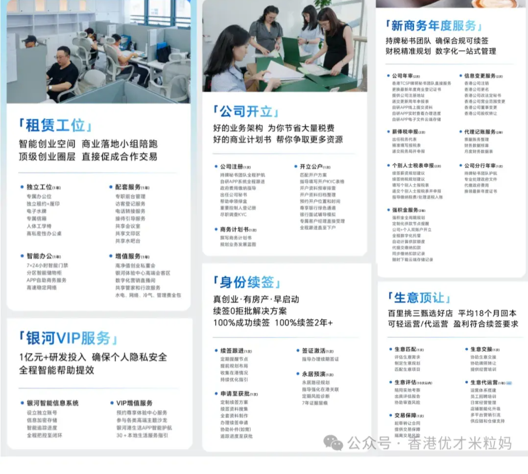 银河集团购买银河【好生意·真经营】服务,你将拥有银河7大板块服务,助您拿到香港身份、子女赴港读书、创业盈利、顺利续签转永居。银河专注香港业务十几年,被艾媒评为香港身份中介机构TOP1,拥有大量获批案例,续签拒批率为0。选择银河,不只是选择一家服务机构,更是锁定一个懂香港政策、续签和创业的长期合作伙伴。现在咨询,即可获取专属香港身份签方案 + 企业出海合规评估!如果你想要了解银河【好生意·真经营】可以加我微信详细了解(手机见卡片)