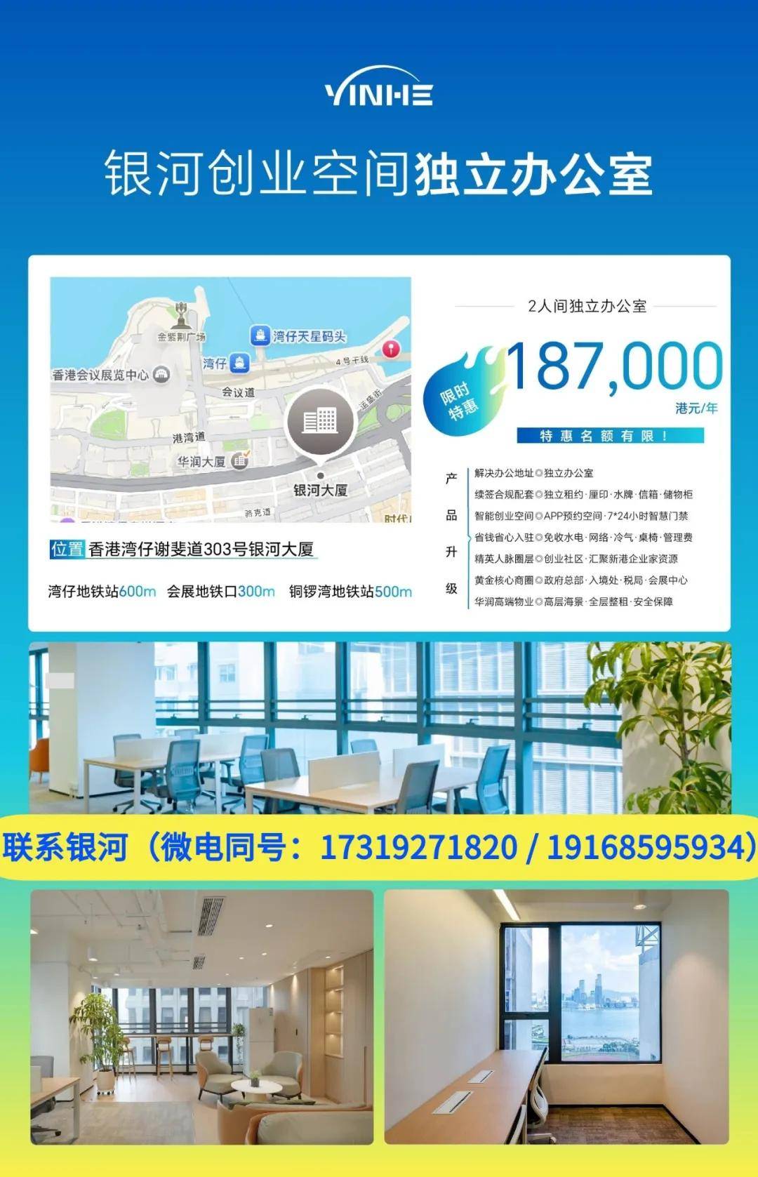 如果想要租赁银河办公空间,可联系银河(微-电:17319271820/19168595934)预约来港线下考察。