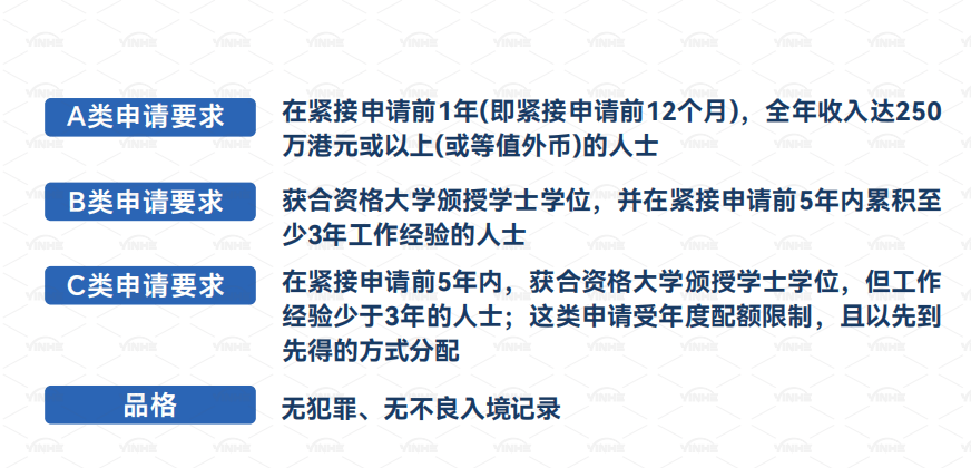 2、香港高才(B类和C类)申请要求: