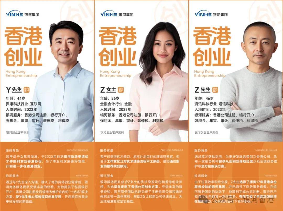 银河集团提供多种商务服务,包括香港公司注册、香港公司开户、年审、做账审计、薪俸税/利得税表申报、缴纳强积金、公司变更等多项企业服务。