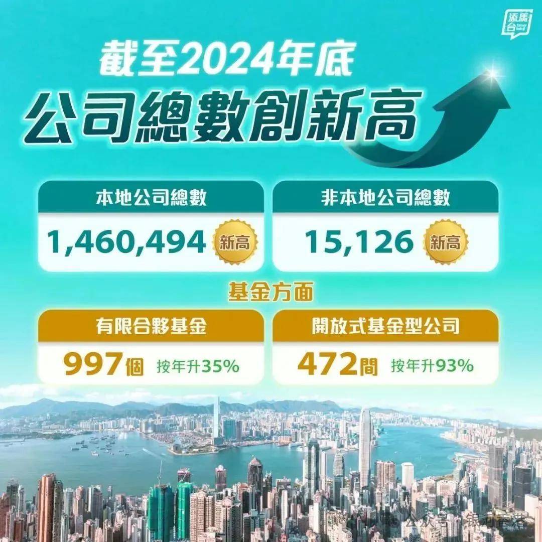 香港政府公司注册处于2025年1月中旬公布,总括2024年,新成立的香港本地公司总数为145,053家,根据《公司条例》注册的香港本地公司总数达1,460,494家。